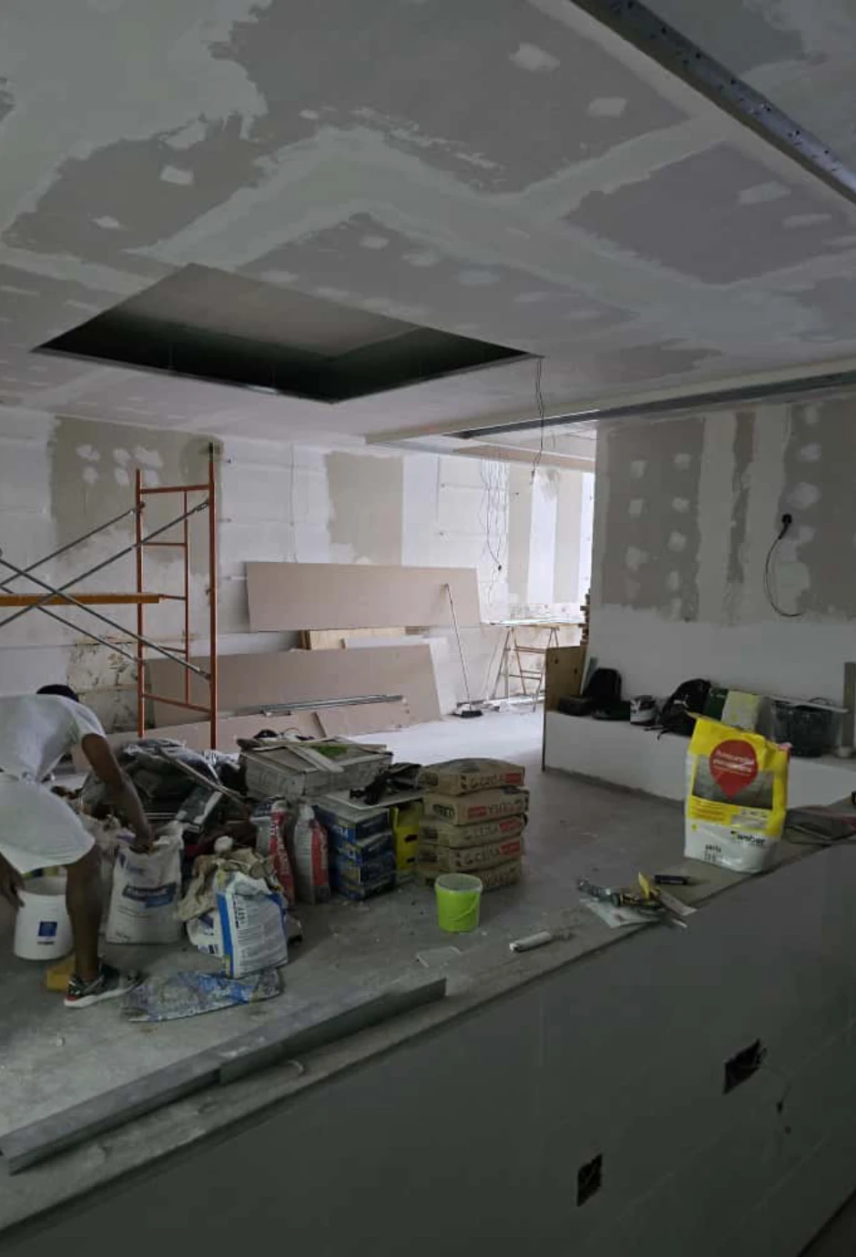 Fabricación de falsos techos en todo el local.